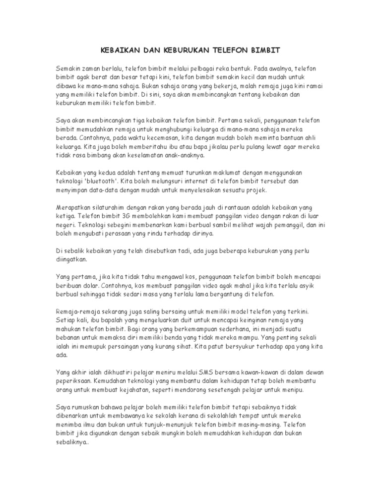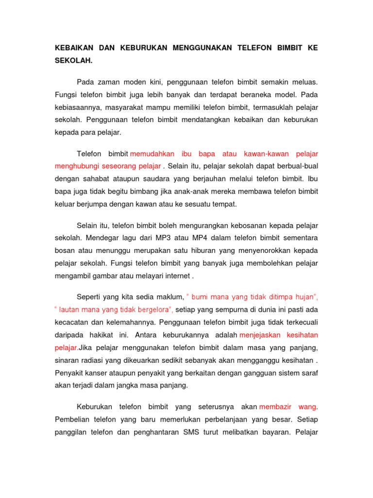 Kebaikan Dan Keburukan Menggunakan Telefon Bimbit Ke Sekolah Pdf